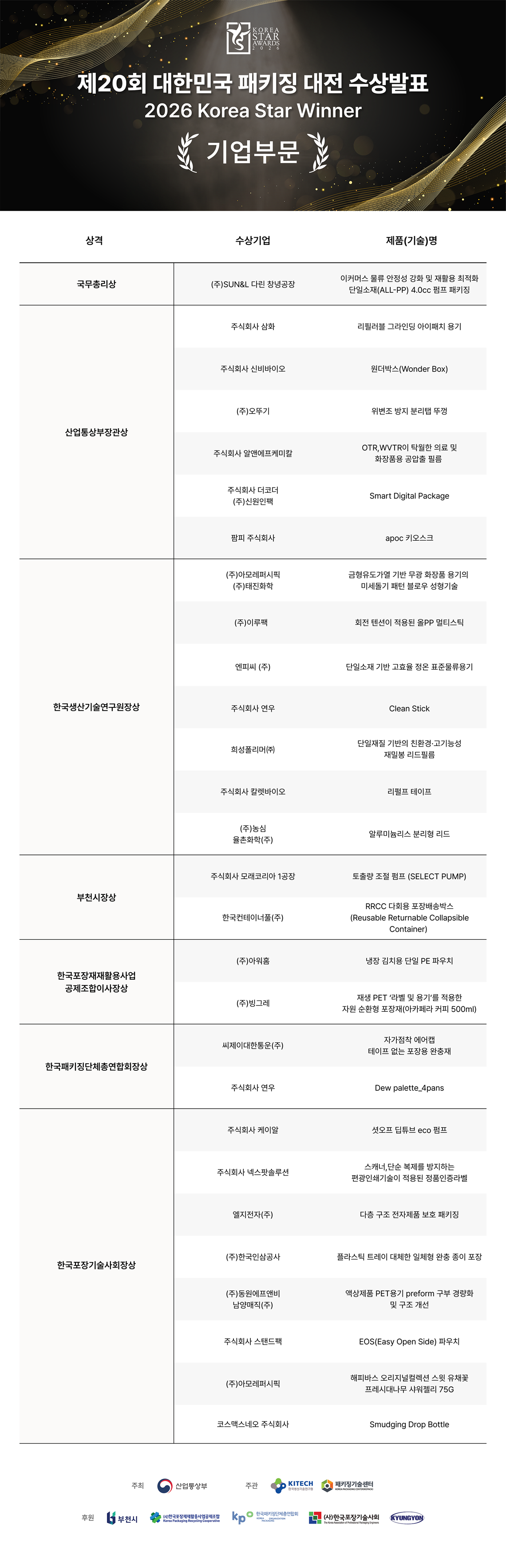 2026 대한민국 패키징대전 심사결과발표 (기업부문)